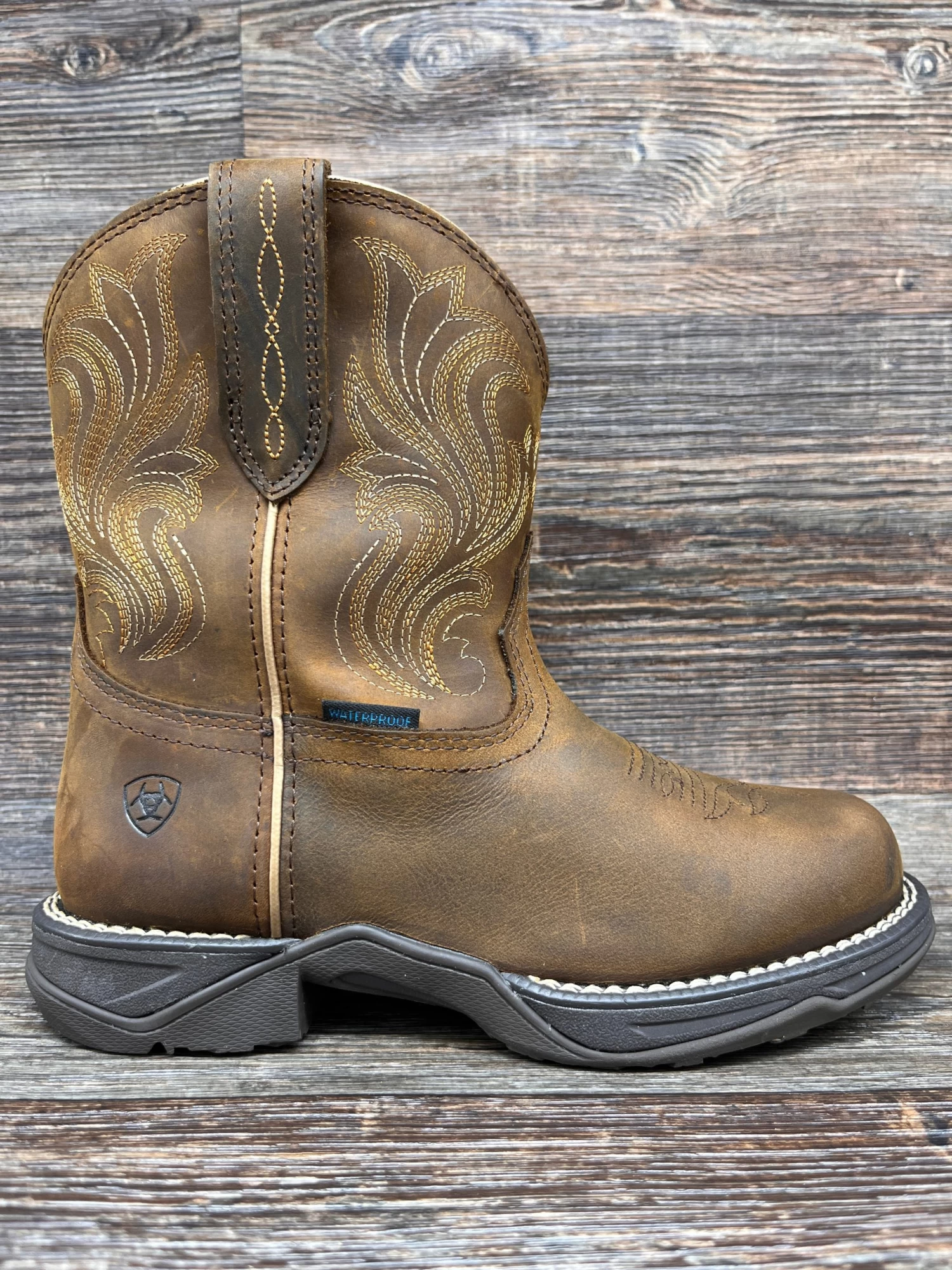An all-purpose boot you can throw on to feed the cows, ride your horse, or run into town. The round toe gives you plenty of room; the waterproof construction means you can hose it down when the day is done.