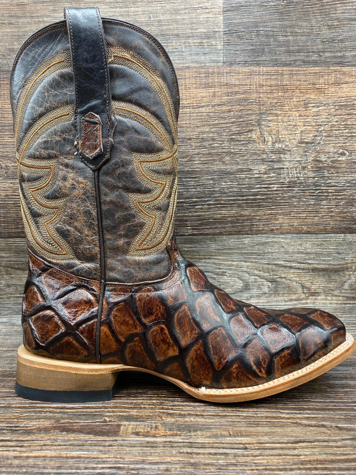 Brown Faux Pirarucu Fish Vamp with 11 inch Western Stitched shaft
