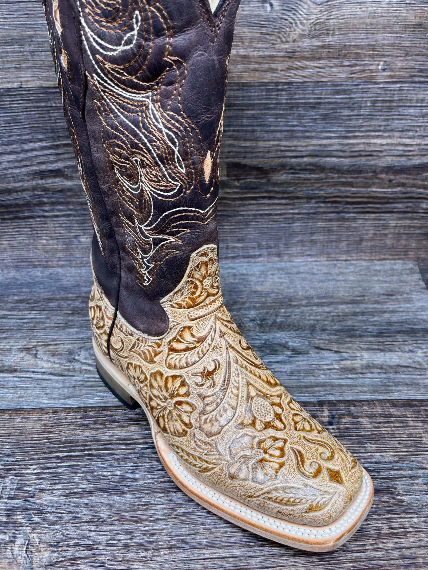 Tan Tooled Leather VampĀ Vamp with 12 inch Western Stitched shaft