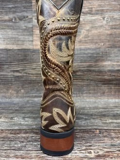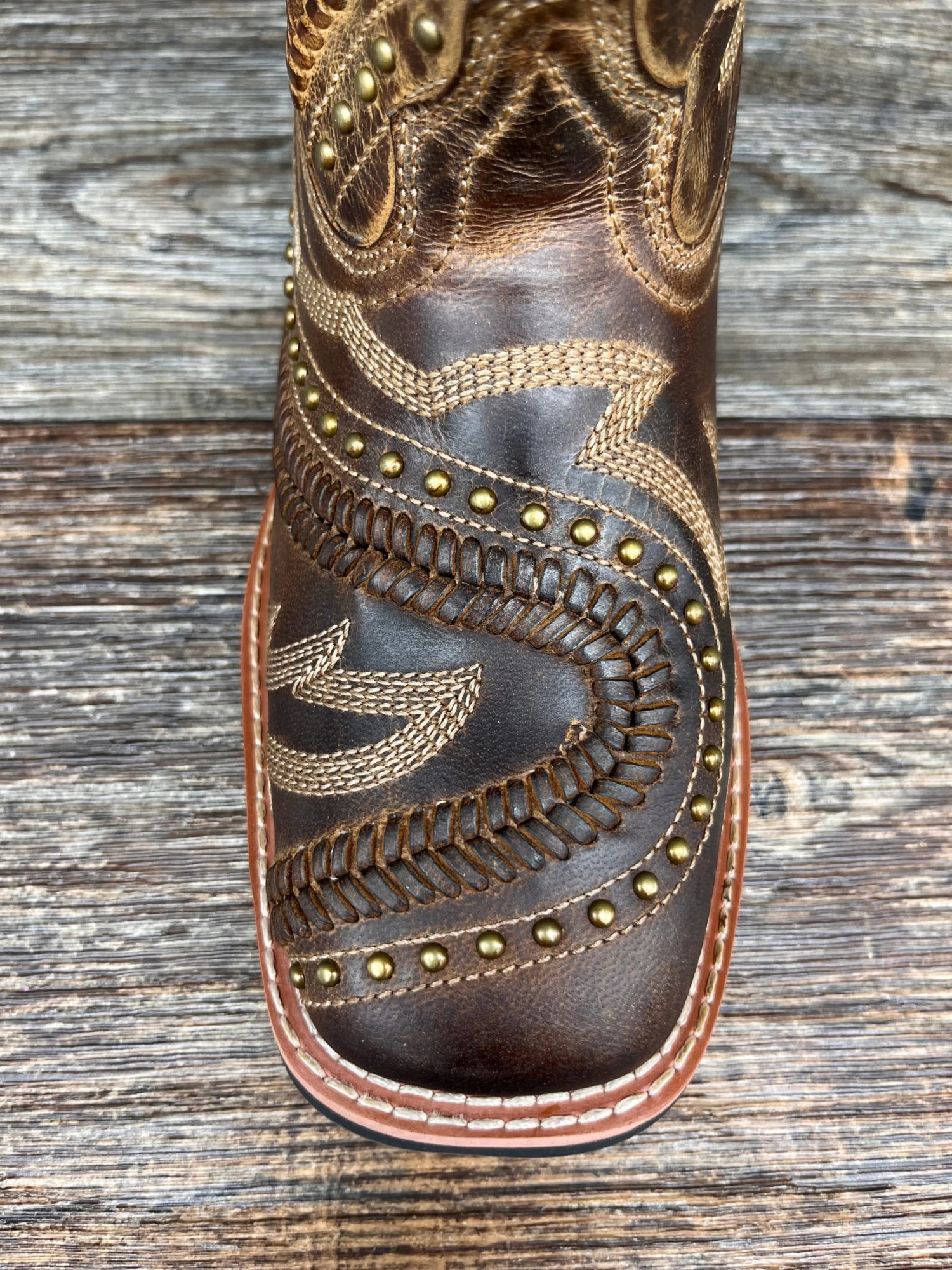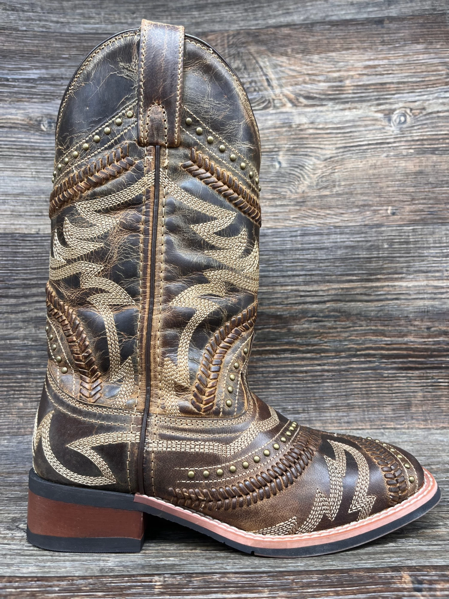 The Charli boot is sizzlinâ hot. Covered with studs, lacing details and fancy stitching, Charli is a cowgirlâs dream boot. Features broad square toe, stockman heel and Ortholite cushion insert.