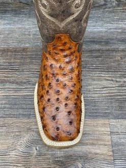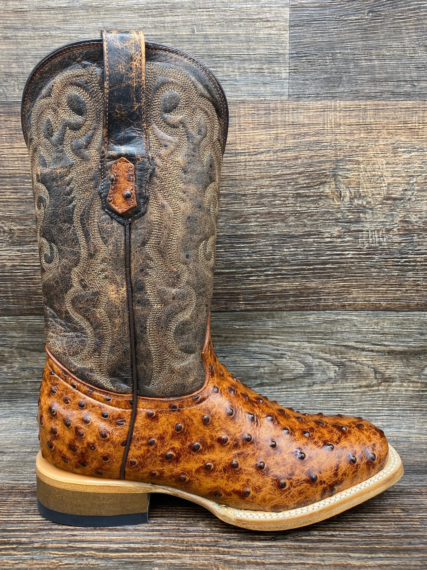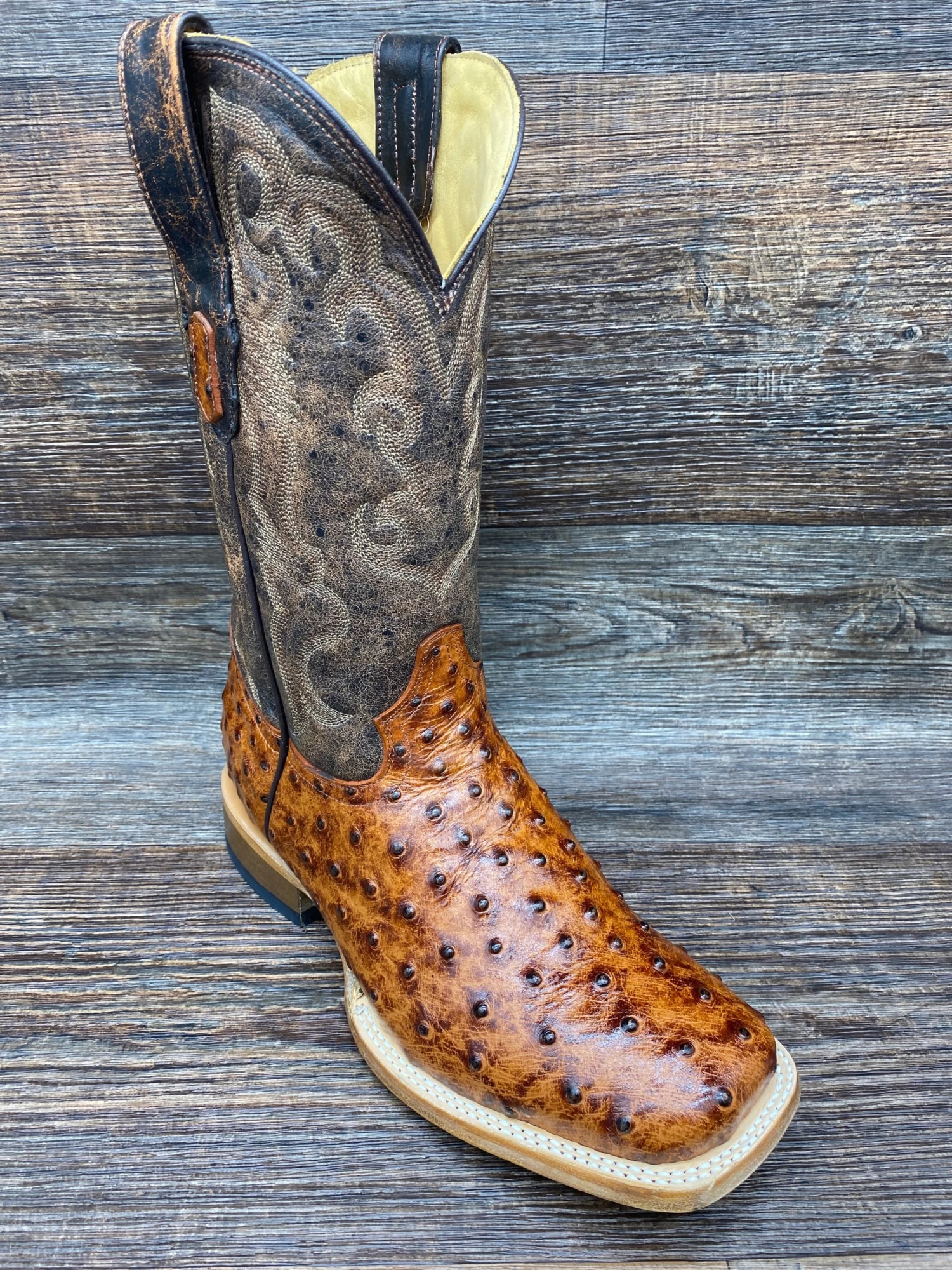 Cognac Faux Ostrich Vamp with 12 inch Western Stitched shaft