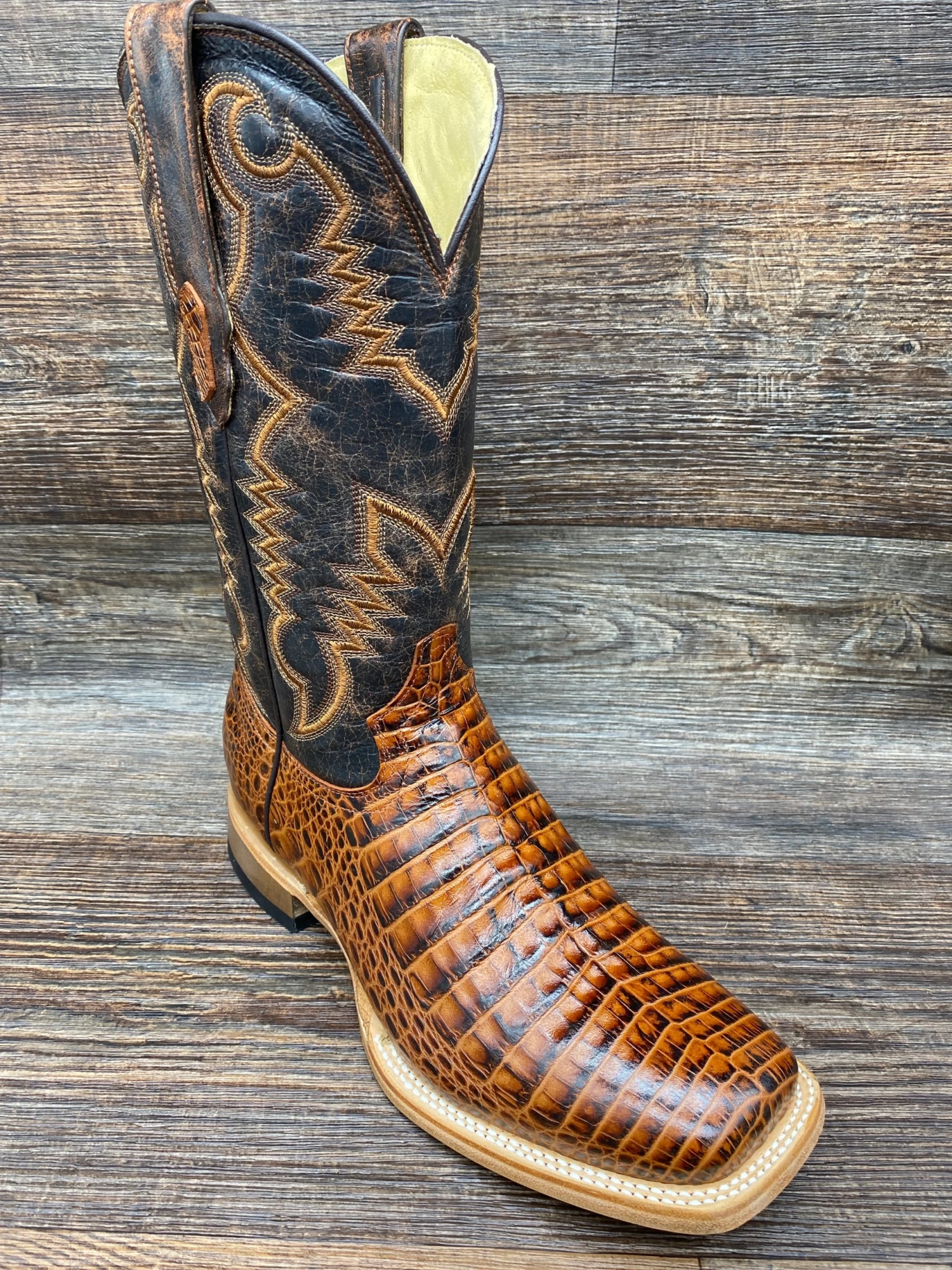 Cognac Faux Alligator Vamp with 12 inch Western Stitched shaft