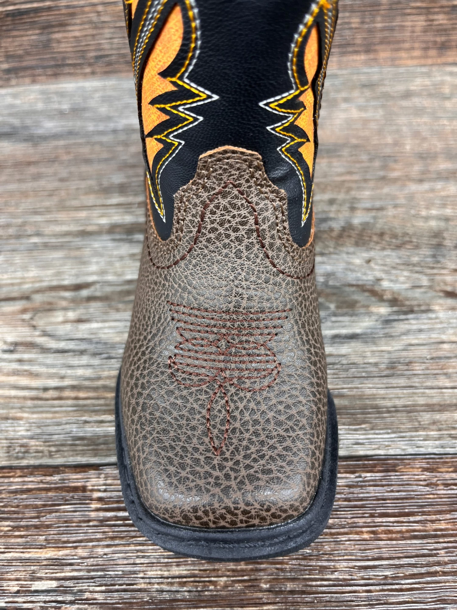A perfect match for mom & dad’s style, these Ariat Intrepid Lil’ Stompers give your little cowboy maximum comfort and safety. Genuine leather and a slip-resistant rubber sole keep little feet securely on the ground while the VentTEK shaft and removable cushion insole ensure hours of happy stompin’.