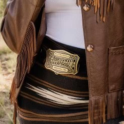 The Y Yellowstone star attitude buckle is symbolic of the classic country shenanigans that happen at the Dutton family ranch. It is bowed in shape with clipped corners. A glistening silver-tone background holds the word “Yellowstone” big and bright in the center with black paint. “Dutton Ranch” and “Montana 1886” accompany it in smaller sizes with stars. All gold-toned for a contrast amongst it all for added depth. Standard 1.5 inch belt swivel.