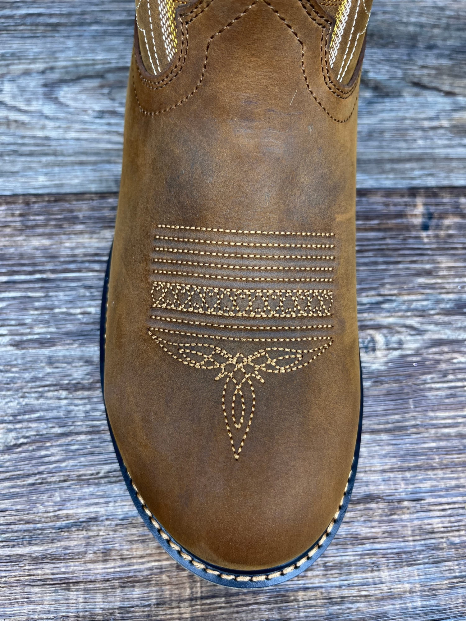 It also has the Durango X-Treme Comfort footed with Memory Foam for all day comfort and support. The heel counter is high abrasion and the shank is fiberglass for lightweight stability. This style has a dual-density midsole with a firmer shock absorbing heel for added stability and a soft shock absorbing forepart for ultimate flexibility and comfort. The rolled shank area and anti-torsion ridged external shank provides added lateral stability and the outsole is a multi-durometer rubber with high abrasion outer lugs for high impact durability and softer durometer mid lugs for added flexibility and increased slip and oil resistance. It has a double row sole stitch around the round toe for added durability and a 1 ½” rocker heel.
