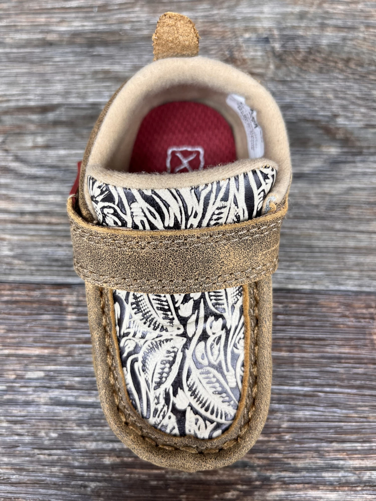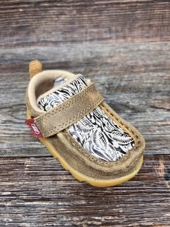 Infant driving mocs that are handcrafted in full-grain leather and an environmentally friendly ecoTWX Tweed, with the same components you’ll find in any other Twisted X driving moc collection. This moc features an EVA footbed and a durable molded rubber outsole which provides improved stability and support as they grow.