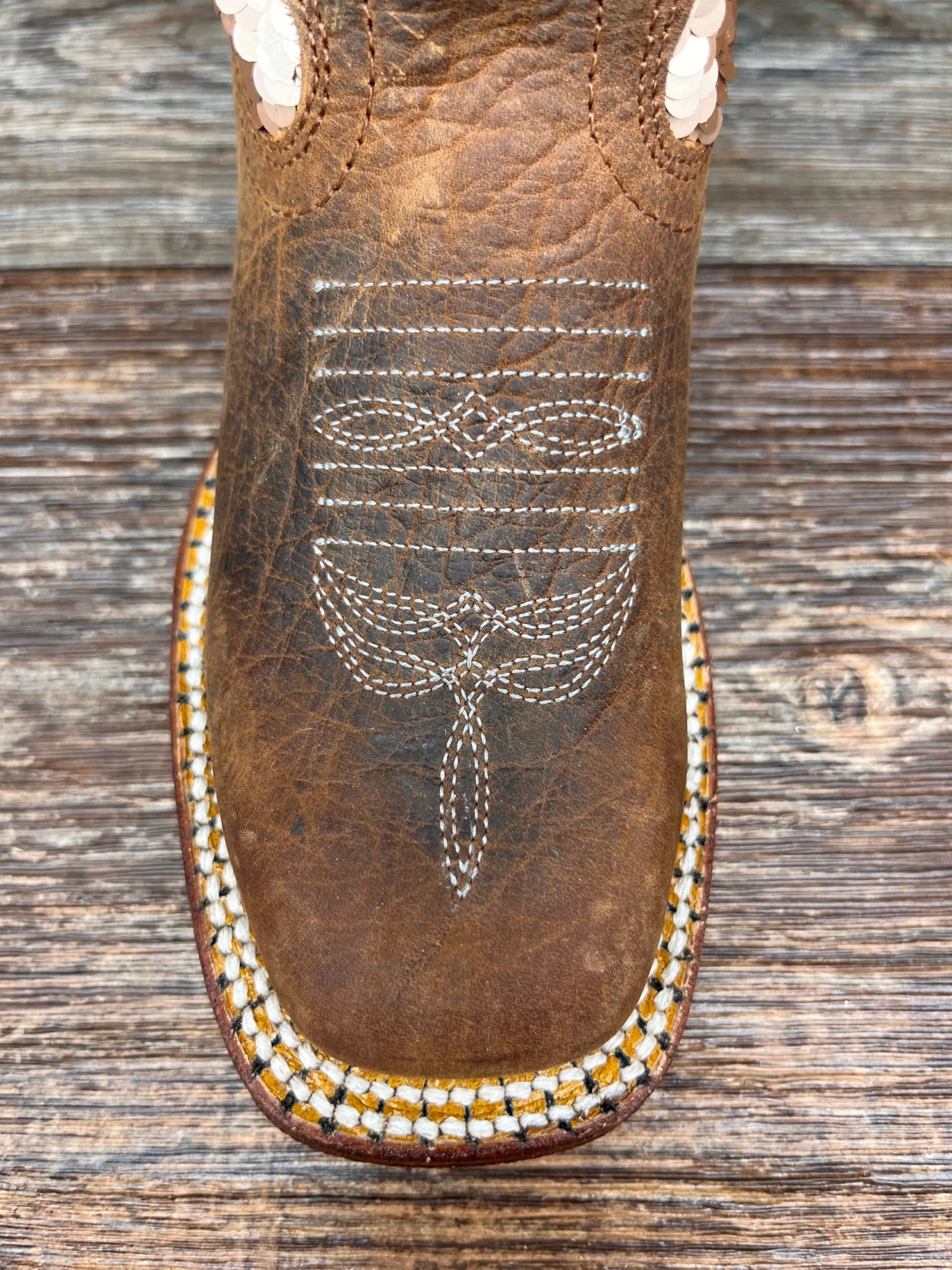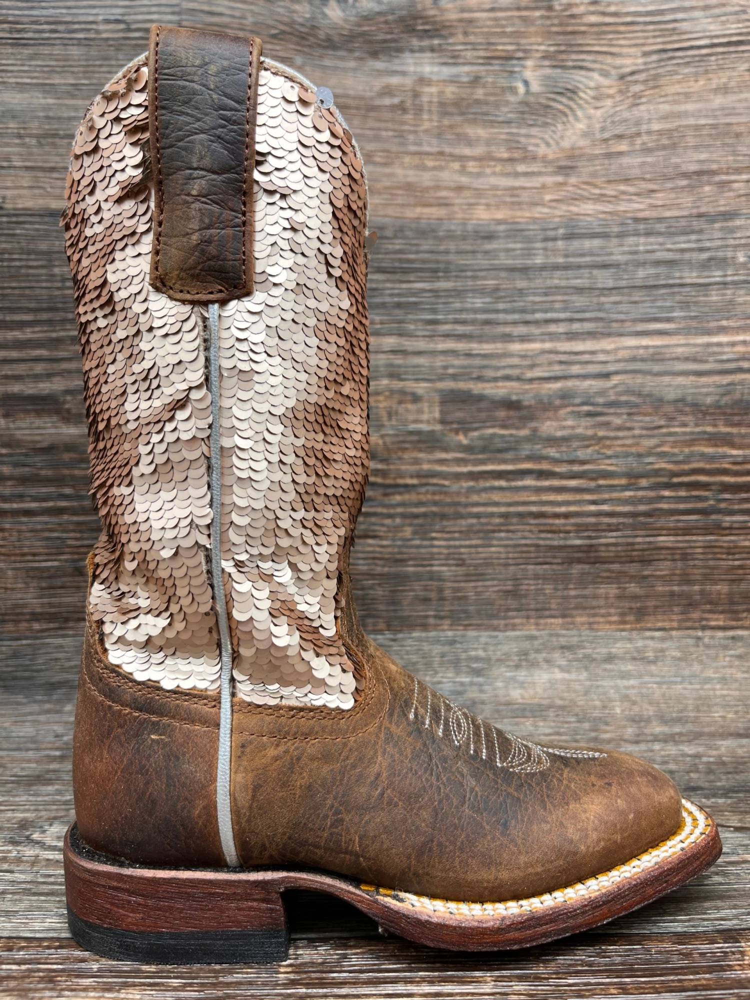 Looking for a unique boot your kids are sure to love? Look no further than this sparkle magic bison leather boot by Macie Bean. With a genuine distressed bison vamp, leather dress sole, and 3/4 goodyear welt, nobody can say these aren’t 100% genuine western, but the real draw is a shaft bedazzled with double sided reversible sequins designed to catch the light from any angle! You have to see it to believe it! Back that up with Macie Bean’s proven boot making pedigree and you’ve got a winner they’ll enjoy for as long as their little feet still fit them!