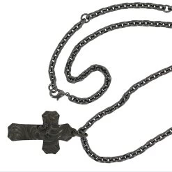 Black nickel finish over a brass base. Montana Armor protective finish to prevent tarnish. Black rhodium finished chain.