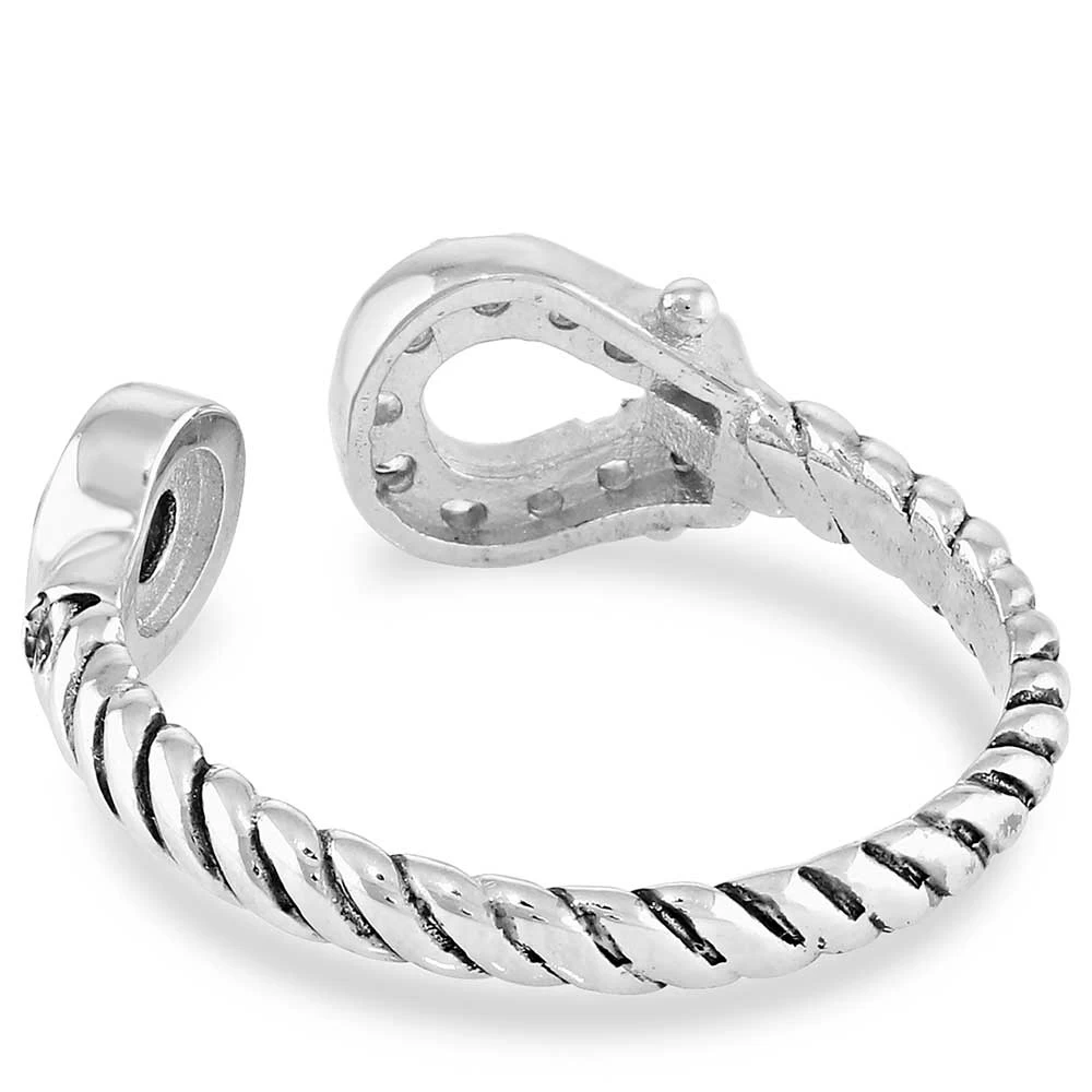 The Infinite Luck Turquoise Wrap Ring will give you all the luck you need! This open ring never fully closes. On one side a compressed turquoise and copper stone and on the opposite end is a horseshoe adorned with clear cubic zirconia crystals to make it sparkle. A silver antiqued twisted rope wraps around your finger to attach the two ends. One size fits most. Stone color will vary.