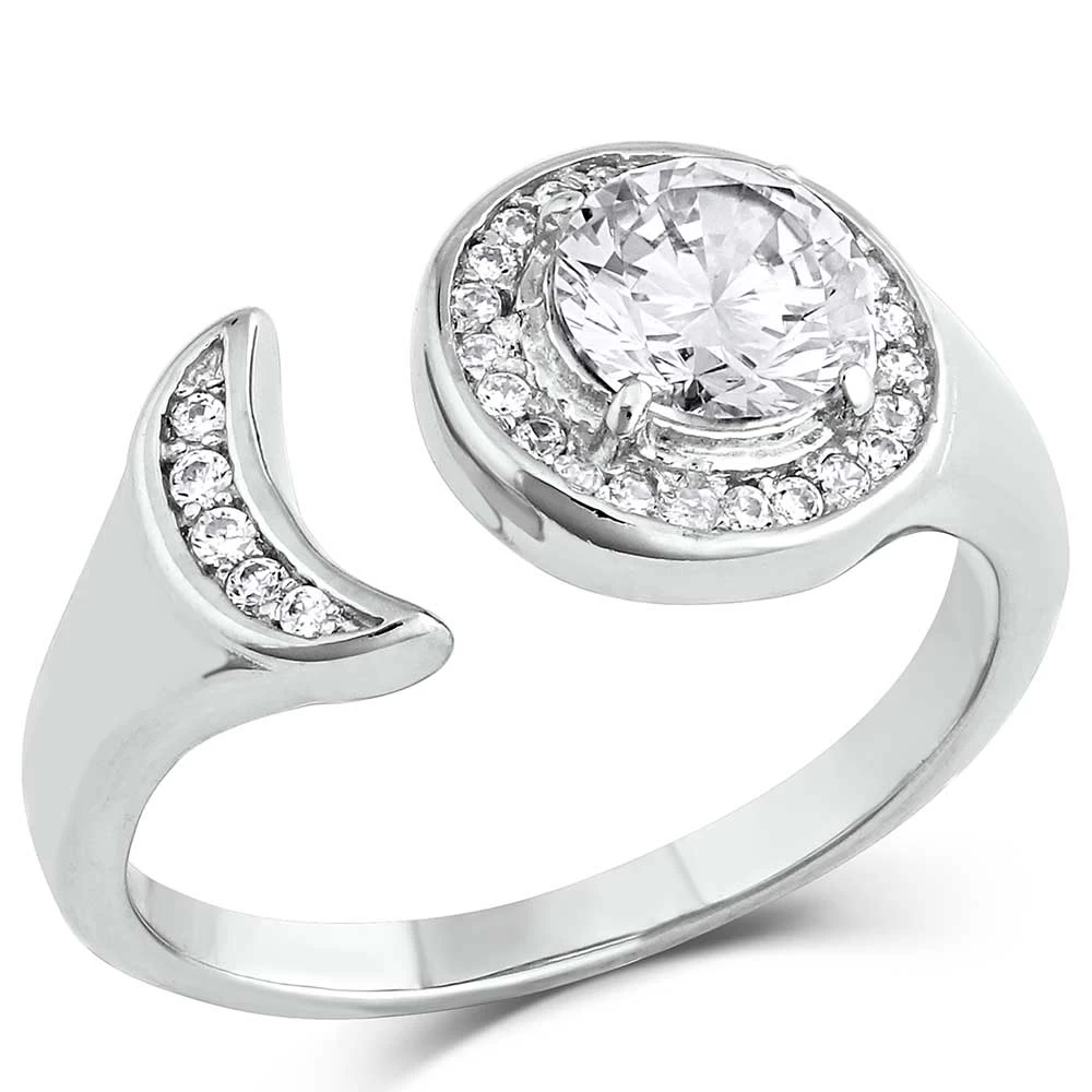 If you are looking to add some bling, we’ve got you covered with the Phases of the Moon Ring. The center of this open ring is a gorgeous round clear cubic zirconia stone surrounded by smaller clear cubic zirconia crystals. On the other side of the open ring is a half-moon shape with more clear cubic zirconia crystals making this ring shine and sparkle. One size fits all.