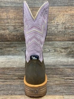 Brown Waterproof Buffalo Leather with Purple Western Stitched Upper